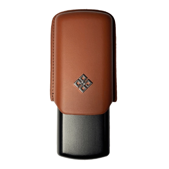 Alestimo Brown and Black Leather and Metal Cigar Case – 2 Toro