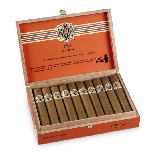 The AVO XO Intermezzo Robusto (5×50) is a medium to full-bodied Dominican cigar wrapped in silky Ecuadorian Connecticut leaf over premium Dominican binder and filler. Offering refined notes of leather, citrus, cream, and a touch of sweetness, it delivers around 45 minutes of balanced, complex enjoyment.