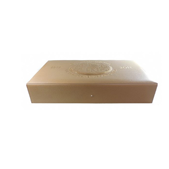 Presentation case – Highly impressive and high-status gift presentation. Leather covered wooden box. Relief embossed image depicting the main temple.