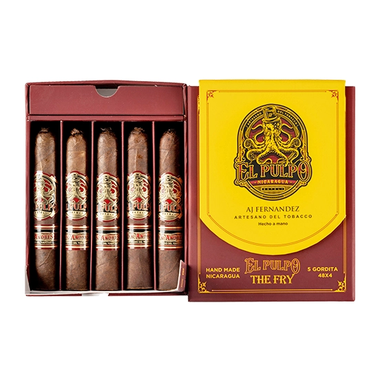 The El Pulpo The Fry Gordita (4″ x 48) is a bold, compact powerhouse designed for aficionados who demand the full intensity of a 94-rated blend in a time-efficient format. Crafted by AJ Fernandez for Artesano Del Tobacco, this “firecracker” features the signature Mexican San AndrĂ©s Maduro wrapper, uniquely fermented to optimize its performance in a shorter vitola.
