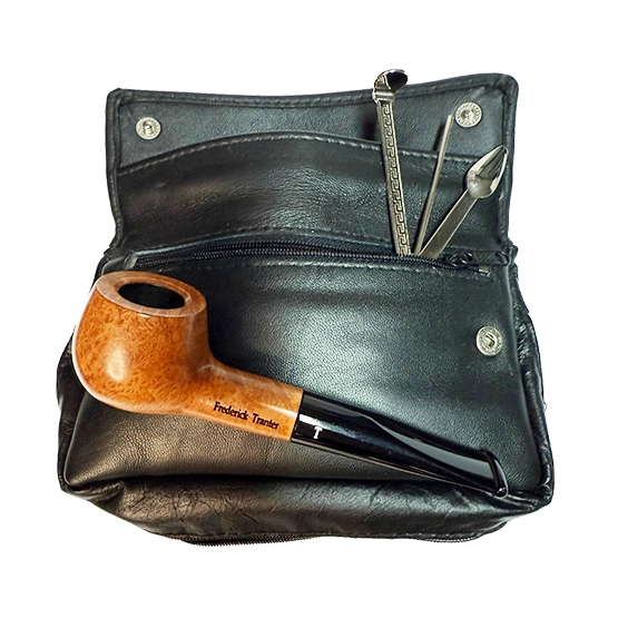 Frederick Tranter Apple Pipe Starter Kit is an ideal introduction to classic pipe smoking. The elegant apple-shaped pipe with a rich root finish offers a comfortable, balanced smoke. Paired with a premium Spanish leather tobacco pouch featuring an expandable gusset for freshness and storage, plus a practical 3-in-1 pipe tool for tamping, cleaning, and reaming, this set provides everything needed for an enjoyable, refined pipe-smoking experience.