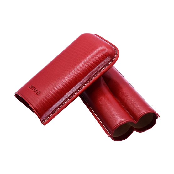 Red leather cigar case for 2 Robusto/Edmundo size cigars.