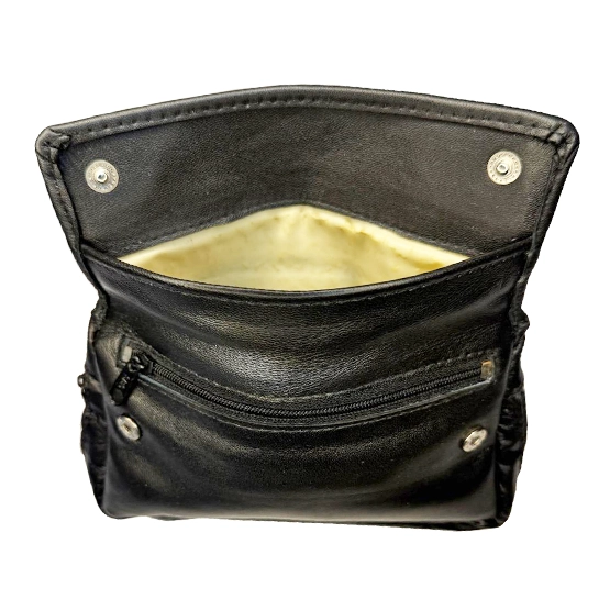 This Leather Pipe Tobacco Pouch is a practical and elegant companion for pipe smokers who value quality and convenience. Crafted from genuine Spanish leather and made in Spain, it features a dedicated one-pipe combination design, allowing you to carry your pipe and tobacco together with ease. Inside, the moisture-preserving oilskin lining helps keep tobacco fresh, while the expandable gusset provides added storage capacity without bulk. Durable yet soft to the touch, this pouch is ideal for everyday use or travel, combining classic craftsmanship with thoughtful functionality for an organised and refined pipe-smoking experience.