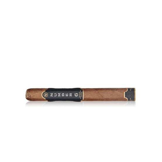 The Number 6 Corona features an Ecuadorian Habano wrapper, which is slightly oily and visually appealing, hinting at the rich flavors within. Beneath the wrapper lies a blend of Nicaraguan binders and fillers, carefully chosen for their flavor profile and smoothness. These premium tobaccos create a cigar that is both elegant and complex, delivering a perfect balance between strength and flavor.