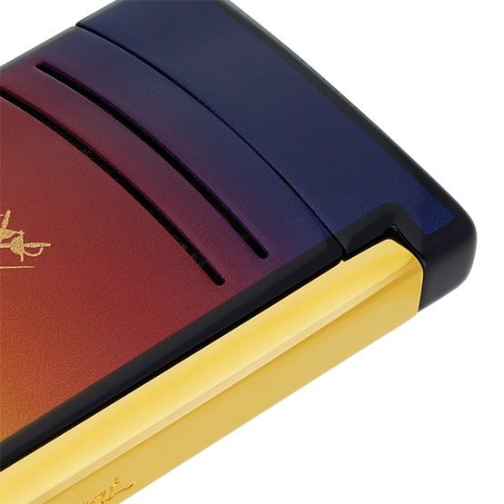 The S.T. Dupont Maxijet Montecristo L’Aurore Limited Edition Lighter is a stunning blend of elegance and functionality, created in collaboration with the legendary Montecristo brand. Inspired by the serene beauty of dawn, it features a striking violet gradient lacquer finish, accented with gold details. The Montecristo logo is displayed on the front, while a symbolic sun and moon motif decorates the back, reflecting the theme of “L’Aurore,” meaning dawn.