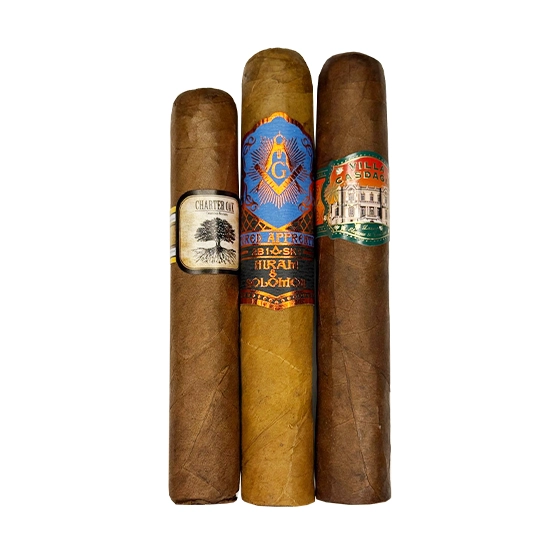 The Summertime Cigar Selection No.2 captures the true spirit of summer—bringing together premium flavour, relaxed lifestyle, and festival-ready essentials. Thoughtfully curated for long, sun-filled days and laid-back evenings, This carefully chosen trio offers balance and variety for warm days and easygoing evenings. The Villa Casdagli Robusto delivers refined complexity with rich notes of earth, spice, and natural sweetness. The Hiram & Solomon Entered Apprentice Robusto offers a smooth, medium-bodied profile, revealing creamy textures with hints of cedar, coffee, and gentle spice. Completing the selection, the Foundation Charter Oak Original Rothschild provides classic, approachable character, showcasing notes of toasted wood, nuts, and subtle sweetness in a shorter, satisfying format.