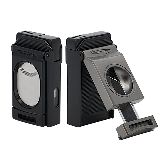 The Vector Switch is a sleek and versatile accessory designed for cigar enthusiasts, combining the functionality of a powerful twin jet flame lighter and a precision cutter in one compact device. Its sophisticated black matte finish is both modern and resistant to fingerprints and scratches, ensuring it maintains its elegant appearance over time. The built-in cutter provides convenience, allowing for a clean and precise cut for an optimal smoking experience. Refillable with butane fuel, this lighter is both sustainable and cost-effective. It features an adjustable flame for controlled use and is designed to be wind-resistant, making it reliable even in outdoor conditions. With its combination of style, practicality, and performance, this lighter is perfect for personal use or as a thoughtful gift for cigar lovers.