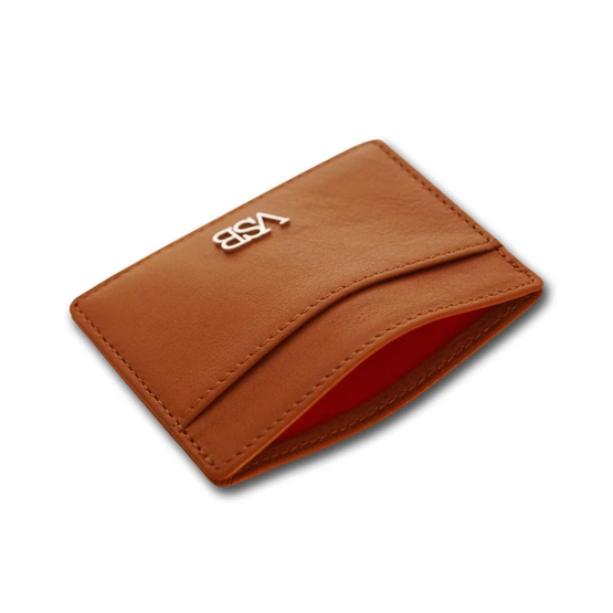 Simple and stylish premium brown calf leather card holder, Slim and compact design. Contains one card pocket on the front and two pockets on the back. Includes a highly wear resistant velvet central pocket ideal for coins.