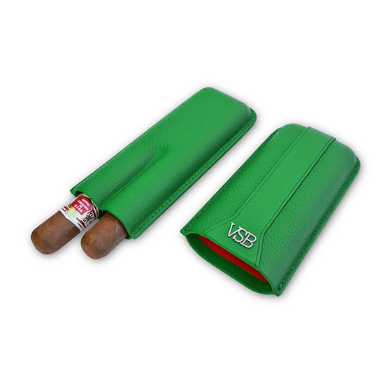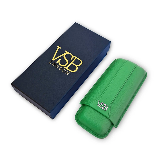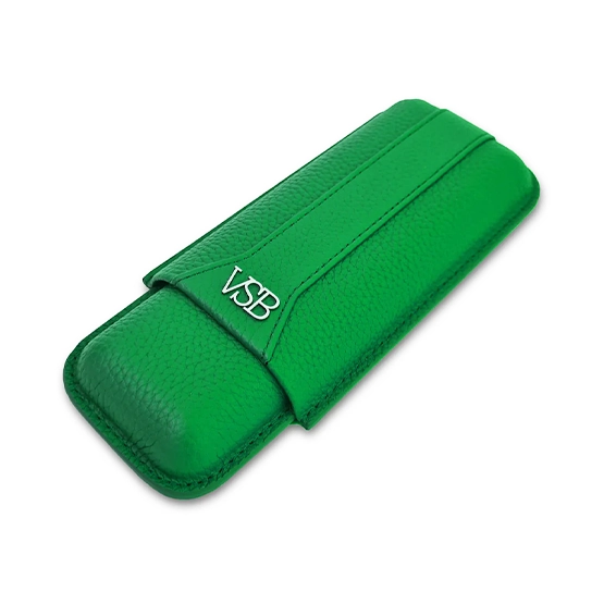 The VSB Green Leather Cigar Case – 2 Robusto is a stylish and durable accessory crafted for cigar enthusiasts who appreciate refined design. The Two Finger Luxury British Racing Green Telescopic Cigar Case is master-crafted from the finest top-grain calf leather, offering a soft, premium feel with the rigidity needed to protect your cigars.