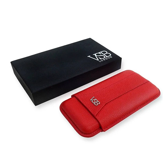VSB Red Leather Cigar Case – 3 Robusto