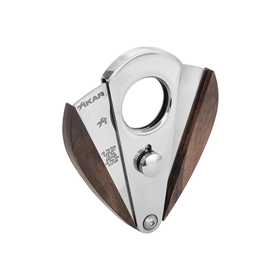 The Xi3’s body is crafted from durable metal with elegant and exotic material inlays, such as carbon fiber, wood, or titanium, offering both sophistication and strength. Its ergonomic teardrop shape provides a comfortable grip, while the spring-loaded locking mechanism ensures smooth and controlled operation. Designed to accommodate cigars up to a 54-ring gauge, it is perfect for medium to large cigars.