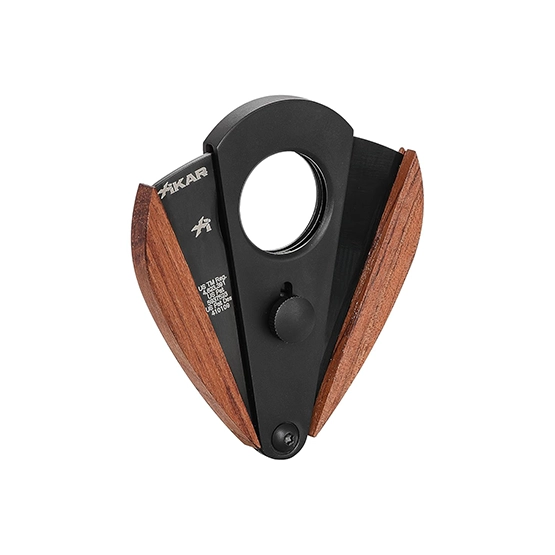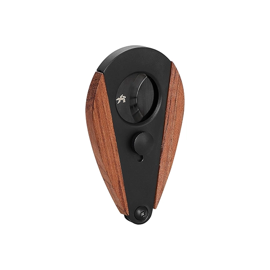 The Xi3’s body is crafted from durable metal with elegant and exotic material inlays, such as carbon fiber, wood, or titanium, offering both sophistication and strength. Its ergonomic teardrop shape provides a comfortable grip, while the spring-loaded locking mechanism ensures smooth and controlled operation. Designed to accommodate cigars up to a 54-ring gauge, it is perfect for medium to large cigars.